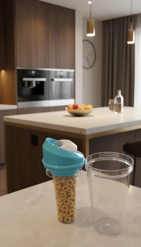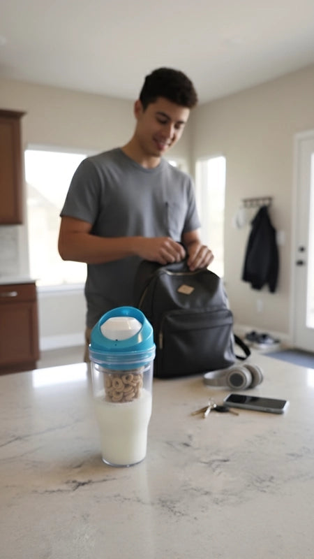 Grâce à son design intelligent à double compartiment, vos ingrédients secs et liquides restent parfaitement séparés jusqu'à ce que vous soyez prêt. Finis les déversements, bonjour la tranquillité d'esprit !